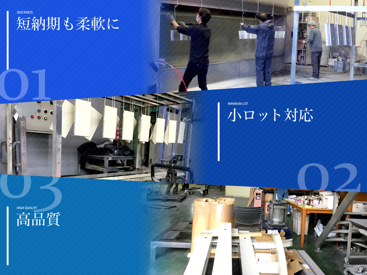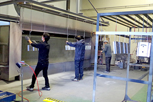 当社では、自社作業として前処理工程から塗装仕上げ、更に金属焼付塗装を行い、
